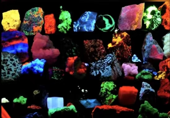 荧光是矿物中一种有趣的现象,有些矿物可在受到外界能量激发时发光,激光撤除后,发光即刻停止,这种发光现象称之为荧光。有些荧光矿物在紫外线等不可见光源的照射下能发出绚丽的荧光,矿物学家将这种有荧光性的矿物称为荧光矿物。它们的世界生动神秘,这是一个在可见光下很难看到的多彩缤纷世界。