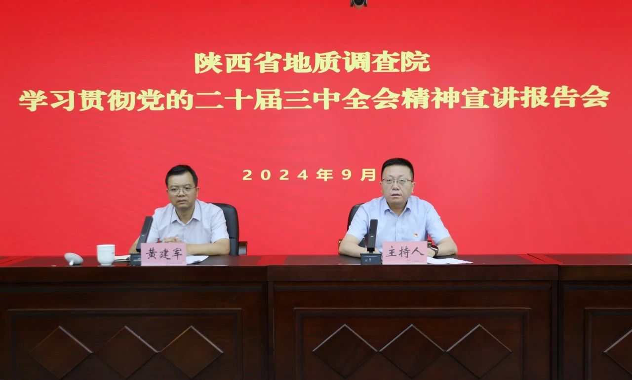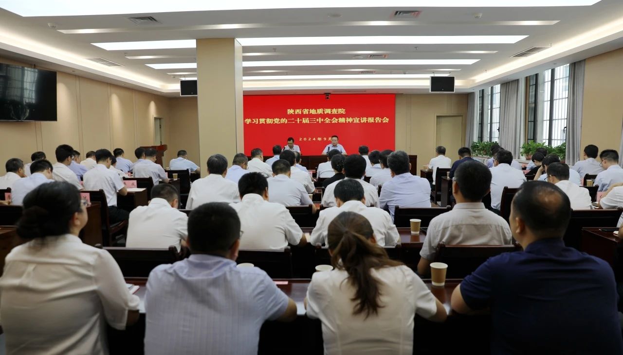 9月13日下午,9323彩集团举办学习贯彻党的二十届三中全会精神宣讲报告会,院党委书记黄建军以“深刻领会进一步全面深化改革主题,走好地质调查高质量发展之路”为题作宣讲报告。院长侯登峰主持会议,院领导班子成员、全院副处级及以上领导干部,直属各单位党委委员、总工程师及党支部书记等参加会议。