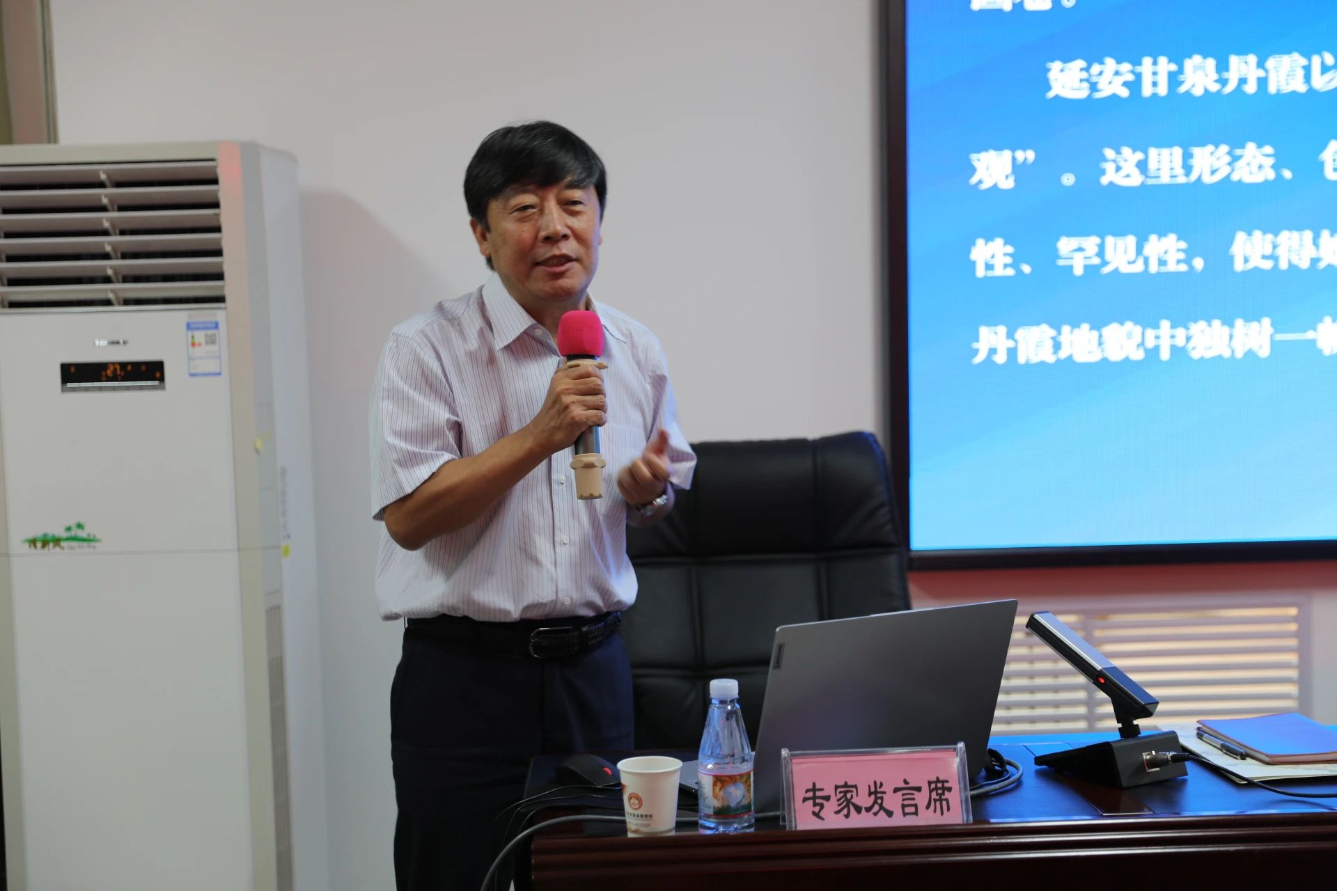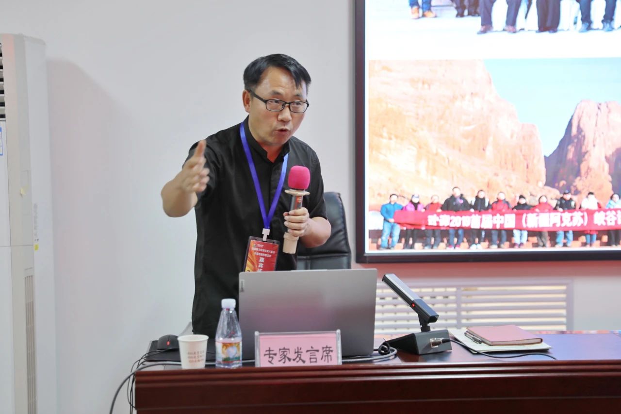 省地质调查院正高级工程师李益朝作了《魅力延安 甘泉大峡谷丹霞地貌科考成果》的主旨汇报,在前期调查研究的基础上,结合本次科考活动,系统介绍了甘泉大峡谷资源概况、文旅科普和野外调查成果,并提出下一步开发利用建议。