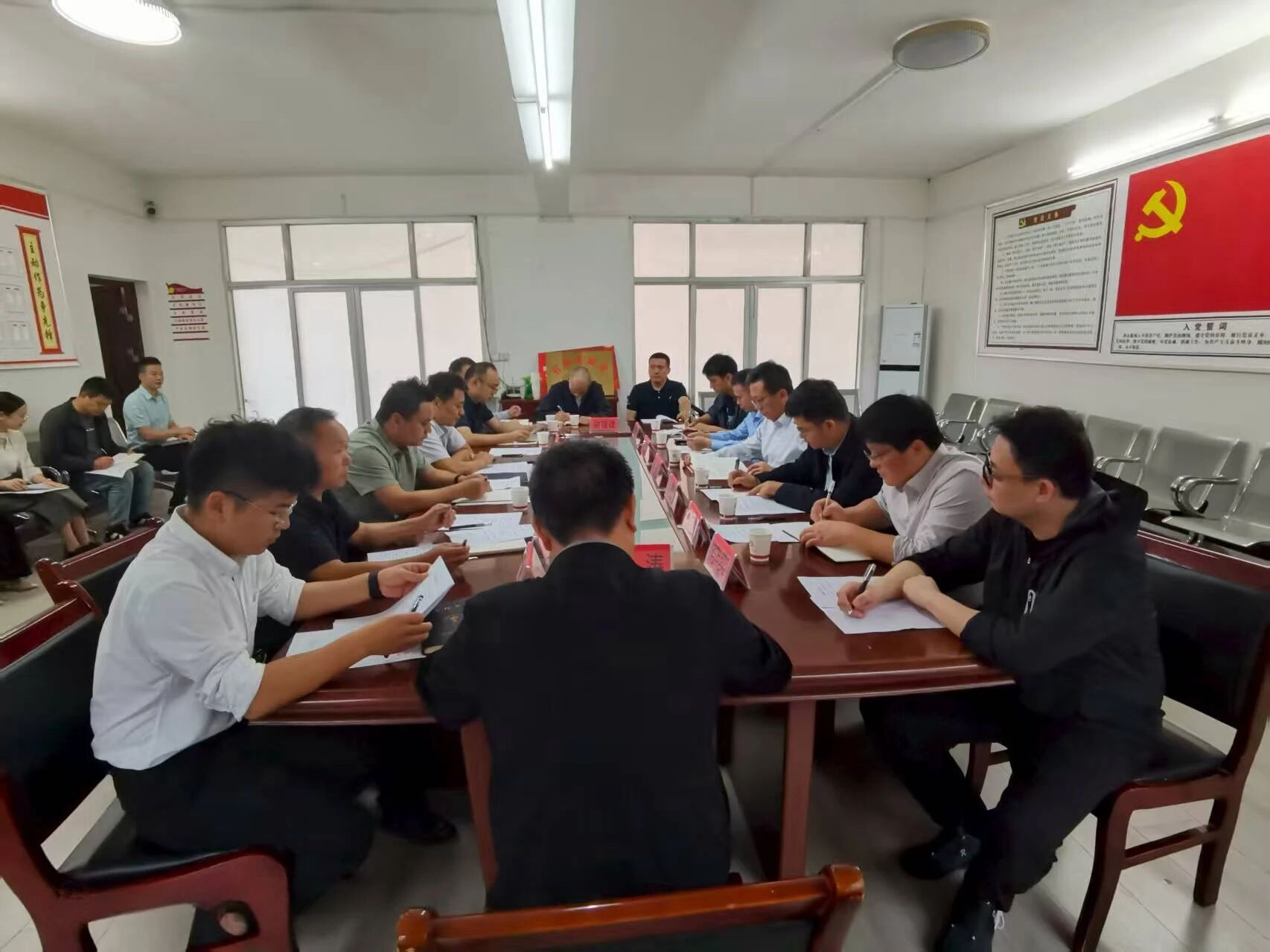 会上,上一届驻村工作队汇报了近两年驻村工作情况,分享了扎根基层的实践经验与心得体会。新轮换驻村干部表示,将坚决接好驻村帮扶“接力棒”,快速掌握工作方法、熟悉村情民意,在守正创新中接续奋斗,以实干实绩助力乡村振兴。杨超刚、王兵对上一届驻村工作队两年来取得的工作成绩给予充分肯定,并对省地调院长期以来对中合村的大力支持和倾情帮扶表示衷心感谢。他们希望新队员能尽快进入角色,与村“两委”班子紧密合作,共同推进各项工作的顺利开展。