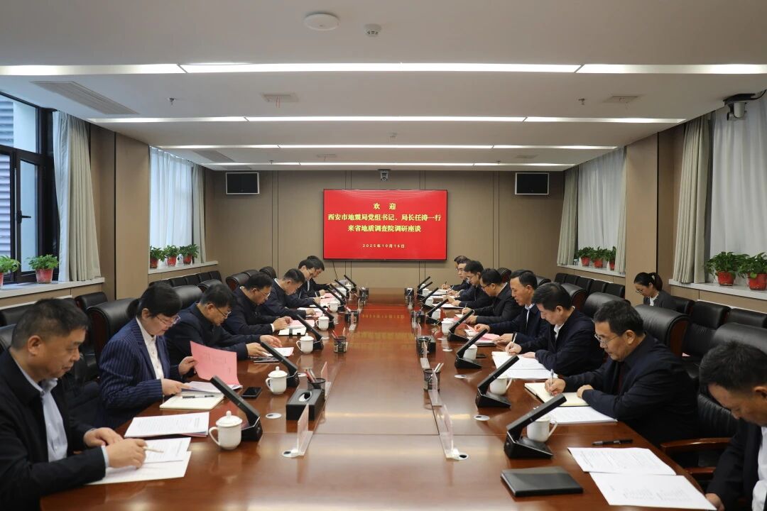 10月16日上午,西安市地震局党组书记、局长任涛一行赴省地质调查院调研座谈,双方聚焦深化防震减灾合作展开交流。省地质调查院党委书记黄建军出席会议并讲话,西安市地震局党组成员、副局长张汉民,二级巡视员邢晴汉出席。会议由省地质调查院党委委员、副院长张晓团主持。双方单位相关处室、单位主要负责人参加会议。