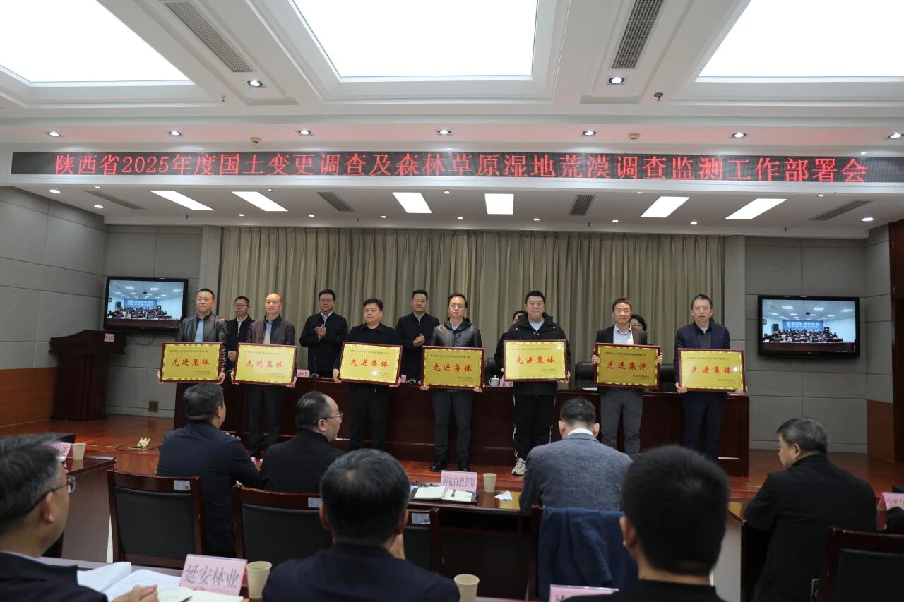 10月30日,陕西省自然资源厅与省林业局联合召开全省2025年度国土变更调查及林草湿荒调查监测工作部署会,通报表扬了2024年度自然资源调查监测先进集体和先进个人,我院卫星中心荣获“先进集体”称号,吴小利、张培栋、李文莉等3名同志荣获“先进个人”称号。