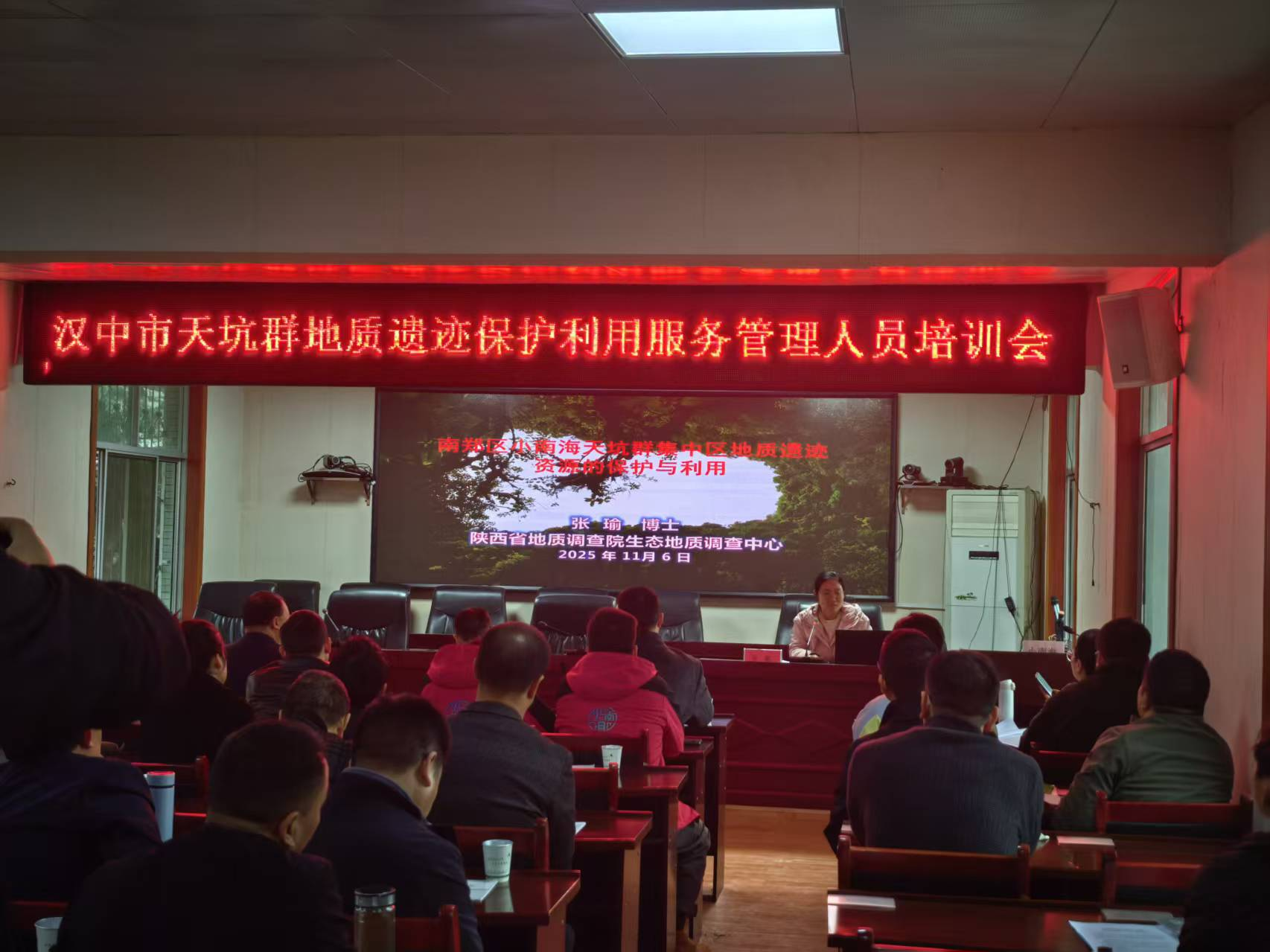 应汉中市天坑群地质遗迹保护利用中心邀请,11月6日,省地质调查院生态中心为汉中市林业局及南郑区小南海镇相关业务管理人员开展地质遗迹保护利用培训。