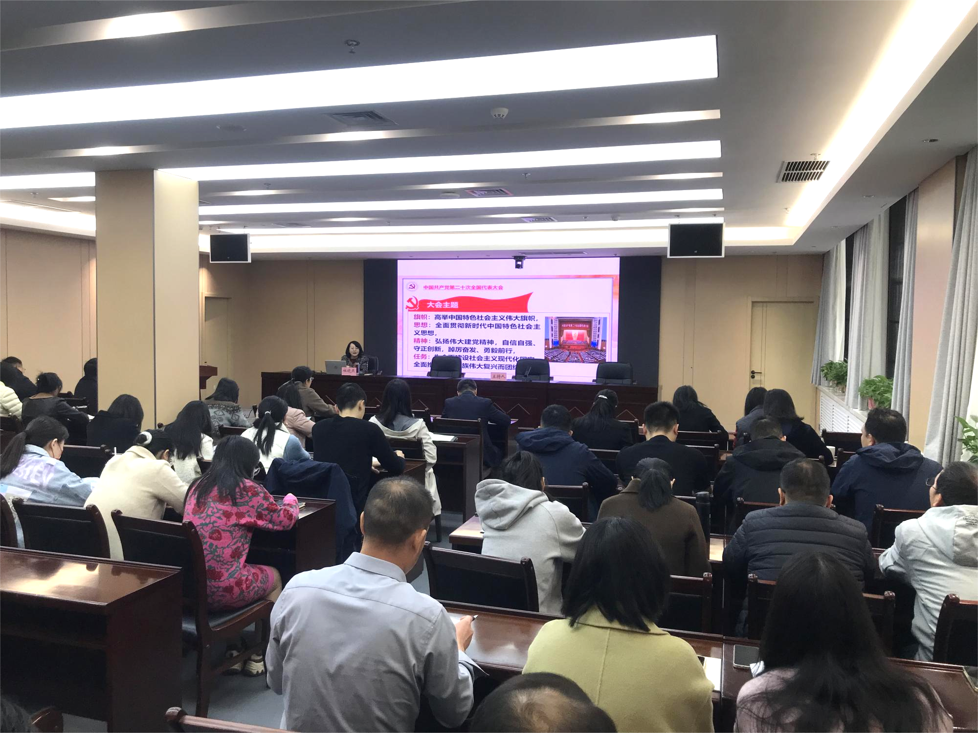 特邀教授从共产党精神谱系角度系统讲授了中国共产党百年发展历程,如革命时期的红船精神、延安精神,建设时期的铁人精神、焦裕禄精神,改革开放过程中形成的伟大的深圳精神、女排精神,以及进入中国特色社会主义新时代强调的西迁精神、科学家精神等,不同时期的精神汇聚成中国共产党人的精神谱系,可以称之为“中国革命精神”。讲解清晰明了、史料丰富,广大干部职工从中国共产党的精神之源吸收营养、汲取奋进力量,进一步激发了干事创业热情。