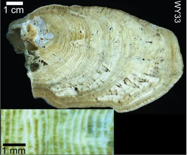 石笋一直默默地记录着从古至今地球的变幻,被称为喀斯特地区的“地质钟”,溶洞里的天然“记录员”。像树轮一样,石笋也有自己的“年轮”。不同于树轮一圈一圈从里到外展布,石笋的“年轮”通常以深浅交互的生长条带自下而上平行展布,将石笋平行于生长轴对半切开后即可以看到这些“年轮”。当洞穴外部气候(例如降水、温度等)或者内部环境(例如洞穴湿度等)存在显著的季节变化时,洞穴滴水的化学性质(例如pH值、饱和度等)的改变会传递到石笋中,造成石笋矿物类型、晶体结构以及化学成分含量的周期性(通常为季节性)交替转换,最终形成深浅纹层的周期性变化。大多数情况下,深浅交互的条带每年增加一组,我们将其称之为“年纹层”,通过计算年纹层的层数即可知道石笋生长了多少年。因此,通过纹层,我们不仅可以推断石笋的年龄,还能据此分析过去的气候变化原因,找出规律,从而为预测未来的气候变化及应对可能发生的气候突变事件提供依据。
