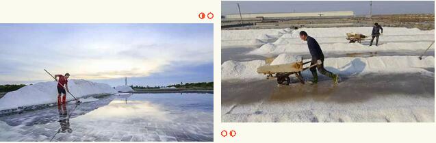 每到春季就要开始引池水制盐,时间久了水就会变成红色。等到夏秋之交南风劲吹的时候,一夜之间就能凝结成盐,这种盐名叫“颗盐”,也就是古书上所说的“大盐”。因为海水煎炼的盐细碎,而池盐则成颗粒状,所以得到了“大盐”的称号。池盐一经凝结成晶体盐后就可扫起供人食用。制盐的人,制成一石盐上交给官府,也不过只得微薄几十文铜钱而已。在海丰和深州地区,把海水引入池内晒成的盐,凝结后扫起就可食用了,而不需再煎炼加工,这一点和池盐是一样的。但成盐的时间,以及它不需依靠南风吹这两点,就跟池盐大不相同了。