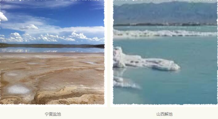 我国有两个池盐产地,一处是在宁夏,出产的食盐供边境重镇食用;另一处是山西解池,出产的食盐供山西、河南各郡县食用。解池位于河南安阳、山西省运城临猗县猗氏、临晋之间,它的四周筑有城墙用来防卫保护盐池。池水深的地方,水呈现为深绿色。当地制盐的人,在池旁耕地耕成畦垄,把池内清水引入畦垄之中。但是要注意提防浊水流入,否则就将造成泥沙淤积盐脉。
