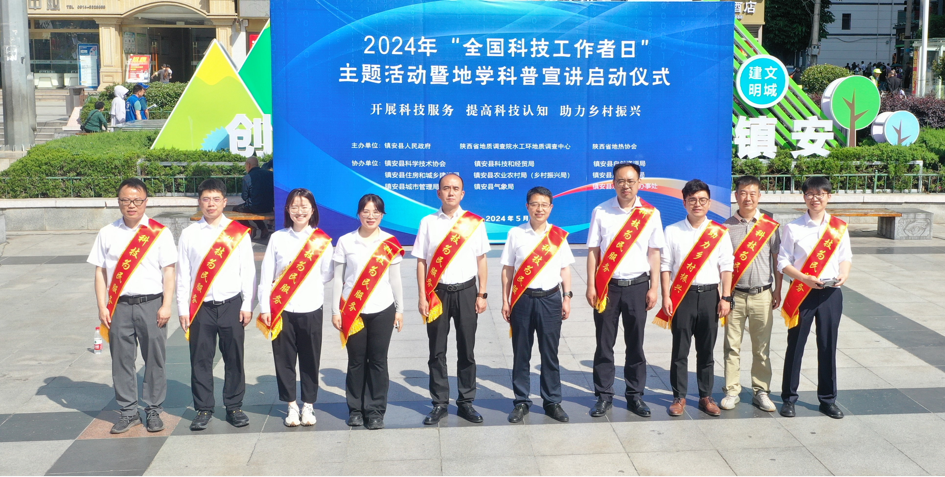 在5月30日第八个“全国科技工作者日”即将到来之际,为大力弘扬科学家精神,进一步强化科技工作者的科普责任担当,5月17日,9323彩集团水工环地质调查中心、陕西省地热协会联合镇安县人民政府以及镇安县科学技术协会、县自然资源局、县农业农村局等九家单位,在镇安县中心广场举办了以“开展科技服务,提高科技认知,助力乡村振兴”为主题的地学科普活动。镇安县人民政府、省地调院水工环中心、县科协、县农业农村局相关领导出席启动仪式并发表讲话。
