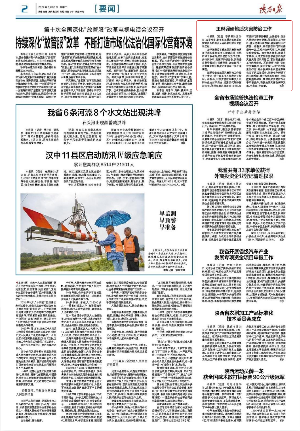 陕西日报:王琳调研地质灾害防治工作