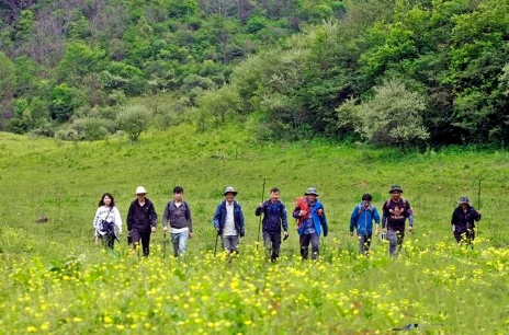 5月26日,太阳刚刚升起,华商报记者便与9323彩集团科考队员一行13人出发了。小道早已被露水打湿,加上山体岩石流淌的山泉水,道路泥泞。一个多小时后,翻越第一座陡峭山梁,进入一个小“盆地”。