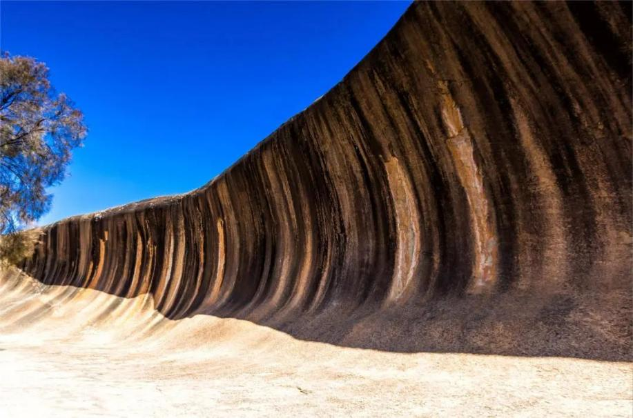 澳大利亚波浪岩,这大岩石并非一个独立的岩石,而是连接北边,一百公尺的海登石及,状似河马张口的,荷马岩、骆驼岩等,串连而成的风化岩石。