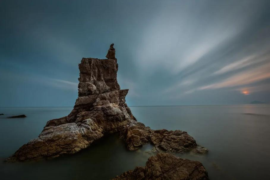 海边礁石上屹立着一位,好似守卫国土的将军状岩石,大家称其为“将军石”
