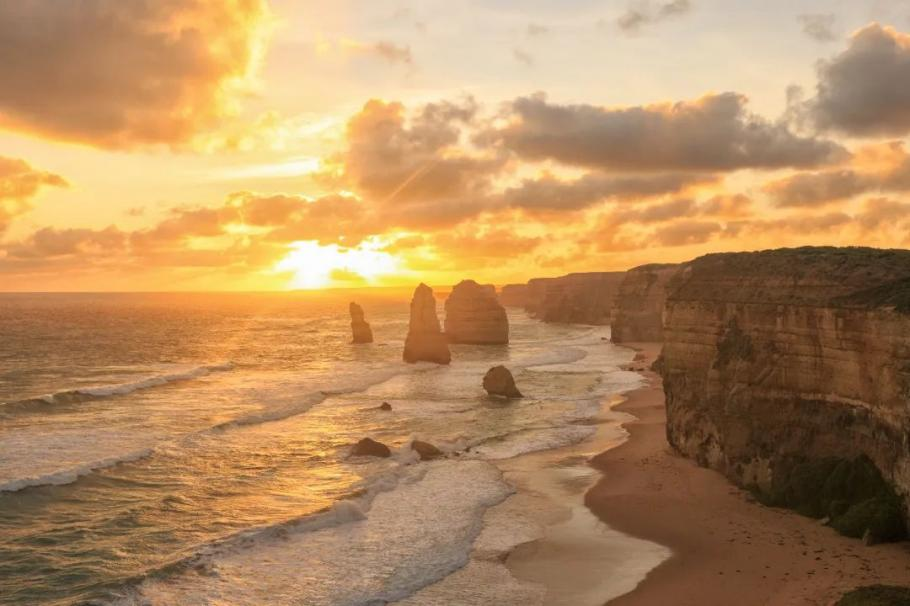 十二使徒岩位于澳大利亚维多利亚州,屹立在海岸旁已有二千万年历史了,由几亿块小石头聚积而渐渐形成,继而埋藏在海底,后来强烈的海潮和风力,令这些岩石暴露水面,成为现时著名的十二使徒岩。