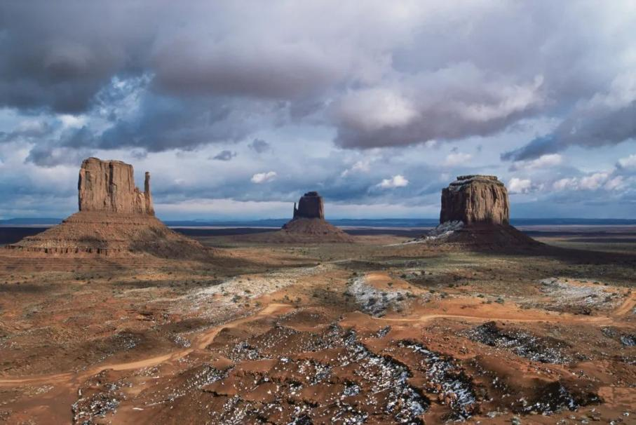 纪念碑谷是科罗拉多高原的一部分,谷底大多是含粉砂岩的卡特勒层地层,或从河流切穿峡谷形成的砂沉积,纪念碑谷的鲜艳红色来自,铁氧化物从风化的砂岩中暴露,谷中较暗的蓝灰色岩石则是来自氧化锰。