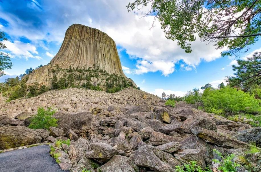 美国怀俄明州恶魔之塔,形成于距今五、六千万年前,地心的岩浆上涌到地表,没有喷出去,冷却下来成为坚硬的火成岩 ,历经千百万年的风吹雨打,无数次的地层变动和岩浆推挤,周围柔软的沉积岩被风化雨蚀而逐步消失,只留下坚硬的火成岩成了魔鬼塔。